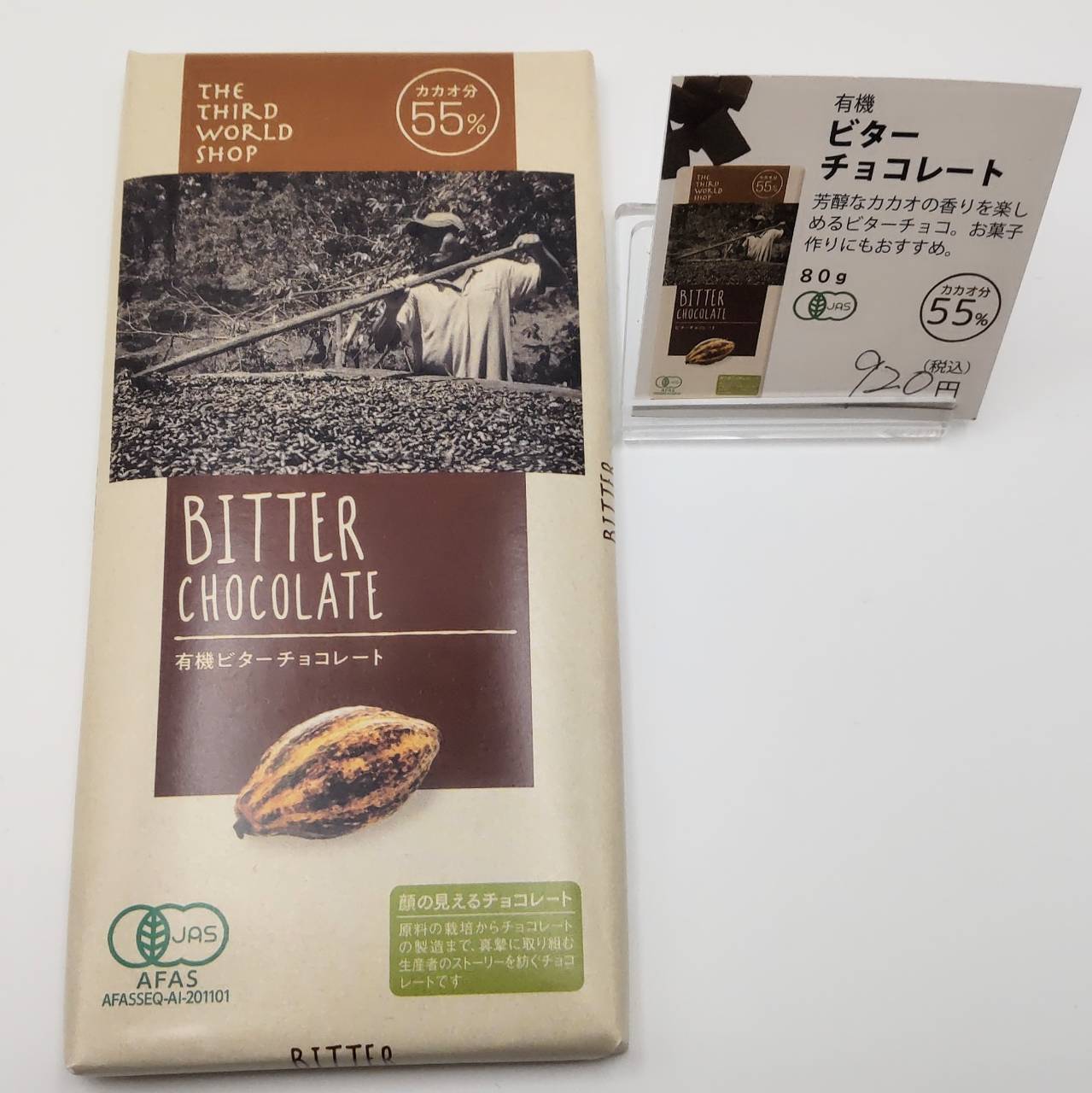 【種類】有機ビターチョコレート:カカオ分55%。カカオの苦みと甘さがほどきバランスのビターチョコレート。